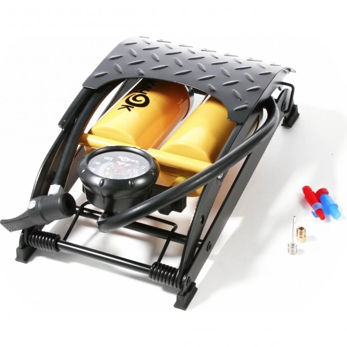 Этот ножной воздушный насос с повышенной производительностью за счет двух рабочих цилиндров и увеличенным ходом поршня идеально подходят для подкачки шин легковых автомобилей, велосипедов, мотоциклов, квадроциклов и различных надувных изделий. Устойчивая платформа из высокопрочного пластика, точный манометр и набор из четырех переходников делают его хорошей альтернативой электрическому компрессору и бережет при этом кошелек.